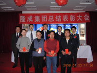 2009年1月22日,隆成集团2008年度总结表彰大会在隆成翔综合办公大楼五楼多功能厅召开。参会人员有隆成集团下属6个企业的员工。会议由隆成集团副总经理曹向前主持并致开幕词。由集团公司曹晓莉副总做隆成集团2008年度工作总结。由刘辉总经理、曹向前副总和曹晓莉副总宣布并给2008年度获奖的集体、先进个人颁奖。在本次会议中,曹晓莉副总向大家通告了2008年集团公司全面完成计划任务的喜讯,并且由隆成集团董事长、总经理刘辉亲自给企业的八名特困职工发放了过节补助。随后,获得先进集体、先进个人、优秀通讯员和优秀职工建议奖的员工代表上台讲了话,代表们用他们的事迹向我们展示了隆成人的风采。