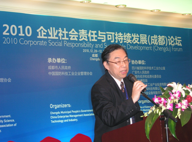 2010年12月29日,由四川省人民政府、中国生产力学会和中国国防科技工业企业管理协会主办的《2010企业社会责任与可持续发展(成都)论坛》在成都举行。