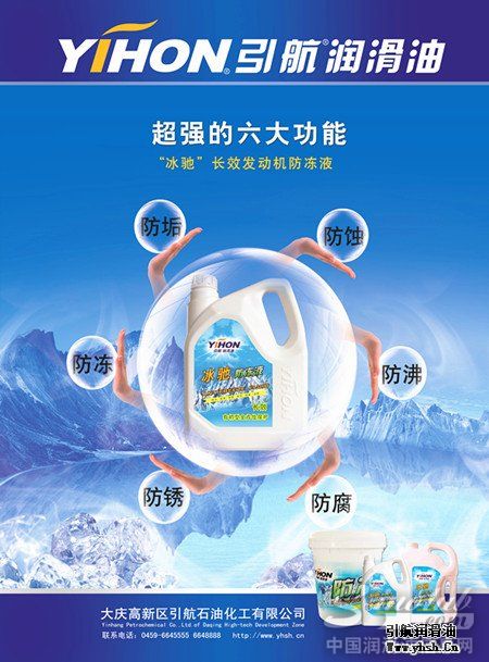 引航冰驰防冻液是所有内燃机(包括轻金属制)冷却系统的最佳保护剂。对水箱、发动机可以起防冻、防蚀及防过热的保护作用。“冰驰”可在冷却系统表面形成稳定的保护膜,防止部件生锈、腐蚀或积垢。能够显著延长冷却系统及发动机的使用寿命,四季通用。引航冰驰防冻液符合美国ASTM D3306标准,适用于各种气候条件下,各类汽车的冷却系统使用,夏季防沸,冬季防冻。
