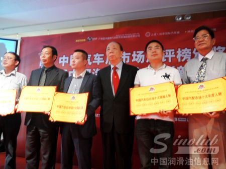 万向集团董事局主席鲁冠球、广汇汽车董事会主席孙广信、庞大汽贸集团董事长庞庆、广州嘉禾盛德汽车配件市场经营有限公司总经理姚维斯、瑞立集团董事长张晓平、台州艺车源工贸有限公司总经理姚文、江苏凯泰置业发展有限公司董事长卢大勇、浙江金恒德国际物流集团董事长周金法、山西普国汽配城董事长景普高、义乌市汽车摩托车用品行业协会会长吴潮奎、山东金麒麟集团董事长孙忠义、意奔玛集团有限公司董事长余安明、上海隆丰汽车零部件有限公司总经理张希文、温商CSA汽车生活广场董事长陈强、瑞阳汽车零部件(仙桃)有限公司董事长张泽伟、西安大明国际汽配城董事长徐振朴、石家庄金刚内燃机零部件集团董事长王季明、山东滨州渤海活塞股份有限公司总经理李振杰、浙江金辉机械有限公司董事长郭健辉、上海大唐汽配快修连锁有限公司董事长唐柏林等行业翘楚入选中国汽车后市场十大领袖人物、汽配市场年度人物及优秀企业家。