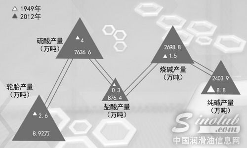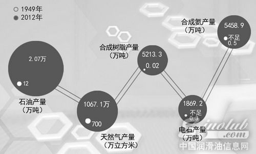 1949年,我国石油和化学工业十分落后,现已形成20多个子行业、生产6万多种(类)产品,门类比较齐全、品种较为配套的完整工业体系。1949年,我国石油和化工产品出口为零、进口极少,2012年进出口总额达到6375.9亿美元。