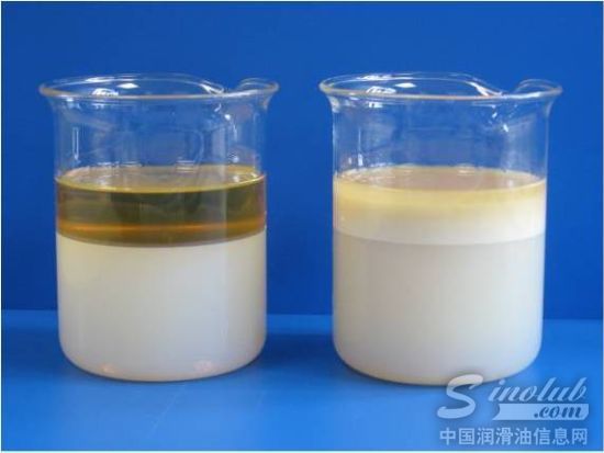 通拿(Tonna) S3 M(左)有优异的抗乳化性能,而普通产品(右)抗乳化性差,形成乳化液