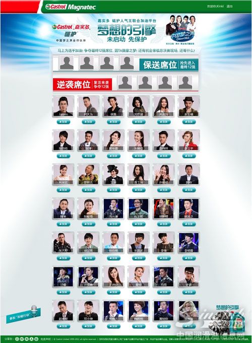 这两周,东方卫视《中国梦之声》迎来了更为残酷的12强争霸战,比赛现场硝烟四起,导师韩红、李玟更是几度失控泪奔。上周末第一批6强选手艰难出炉,本周末我们也将见证剩余6强的诞生。然而,这些脱颖而出的12强学员并非完全安全,他们还将面对来自42强中其余30强学员的逆袭挑战。如果您希望自己喜爱的学员能在梦想的舞台上继续前行,请登录嘉实多磁护人气王联合加油平台(castrol.qq.com/voting.html)或中国梦之声官方网站"13亿掌声"频道(idol.dragontv.cn),为您心中的TA送上掌声,加油鼓劲!在嘉实多磁护人气榜截至时,已入围全国12强的学员中排名前四的将获得安全保护,而其余30强学员中的前四名将获得逆袭挑战资格,他们将在7月14日晚东方卫视直播的"梦想逆袭战"中浴火重生,争夺全国12强席位。不仅如此,在7月21日开始的淘汰赛进程中,嘉实多磁护人气榜还将持续升温,每周获得榜单冠军的学员将在之后的比赛中获得特权优势。