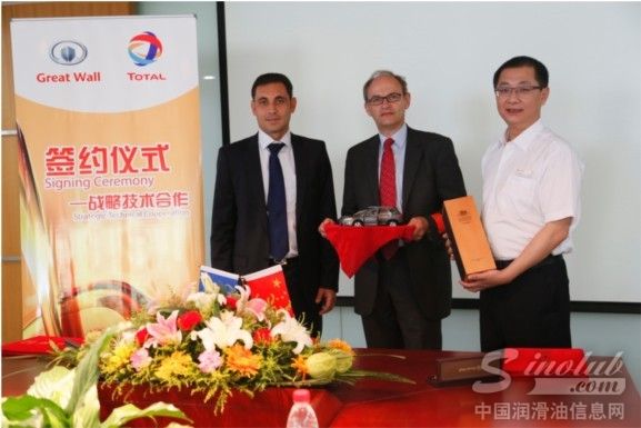 [保定,中国] 2013年7月3日, 长城汽车有限公司和道达尔润滑油在中国保定签署了《战略技术合作协议》。在该合作协议下,道达尔润滑油将会利用其在润滑油研发领域的丰富经验和专有技术来帮助长城汽车公司提升润滑油检测能力,建立润滑油使用规范和标准,同时协助优化发动机设计。