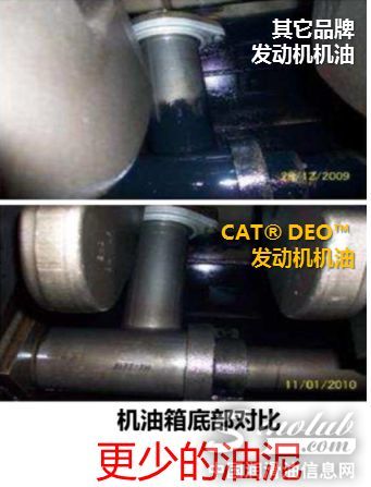在上面对比试验中,下方对比图中使用的CAT®DEO™ 发动机机油,是专为满足最新发动机技术而研制,为引擎提供全方位保护,超过API CI-4标准要求的发动机机油,为您的设备提供远高于行业标准的全方位保护。如果您的设备工作时间长,工作负荷大,CAT®DEO™机油是您的最佳选择;另外,我们特别推荐电喷发动机使用CAT® DEO™机油。