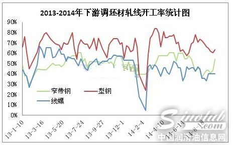 以钢市为例,据了解,尽管多数钢企因为担忧负债率问题而加大开工负荷,高炉开工率达到90%以上,但因总体利润低迷,今年来仍有相当一部分中小企业陷入停工破产局面,据悉,在轧材环节,目前市场开工率仅有30-40%,对工业润滑油需求冲击非常明显。据卓创资讯数据统计,截至8月份,2014年我国润滑油表观消费量为591万吨左右,仅较去年同期小幅增长5.04%。