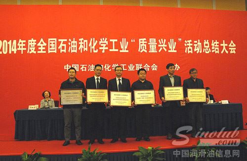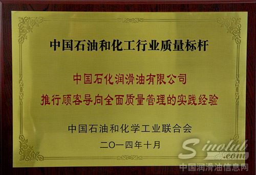 11月25日,中国石油和化学工业联合会在京召开2014年度全国石油和化学工业“质量兴业”活动总结大会,中国石化润滑油有限公司推行的《顾客导向全面质量管理》实践经验荣获“质量标杆”称号。