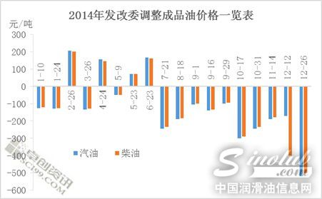 原油下跌,对国内油品市场造成的最直接影响便是成品油价格波动,2014年以来,发改委共调整汽柴油最高零售限价18次,其中仅4次上调,14次均为下调。国内成品油市场因此形成“十一连跌”的壮观景象,其中11月28日的下调因消费税上涨而冲抵,实际落实了“十连跌”。白油因与柴油组分相近,价格波动也有柴油息息相关,今年以来,基本每轮汽柴油调价,白油生产企业都紧跟其后,成品油调价也成为白油市场的“晴雨表”。成品油十连跌对白油市场造成重创,在价格连续下跌,库存却消化缓慢的情况下,多数炼厂降低生产负荷以应对,但仍难消除需求疲软顽疾造成的消极影响。