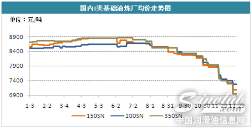 步入2015年,整体交投氛围延续冷清迹象,主营炼厂价格不断走低。目前国内一类150SN主流价格在6000-6400元/吨,二类150N主流价格在7000-7400元/吨。