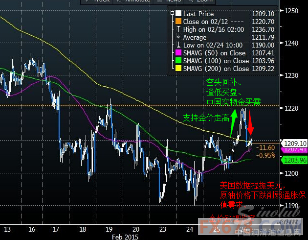 原油价格大幅下挫,这无疑又削弱了投资者对黄金的通胀保值需求。