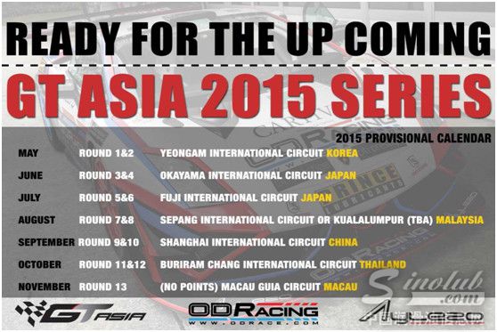 作为全球赛车圈最瞩目的比赛之一,2015 GT Asia Series赛事13回合比赛(当中前12回合积分赛)在7个亚洲顶级赛道中竞逐,除了车种齐全之外,来自世界各地的赛车高手都即将共襄盛举,精彩程度可期。