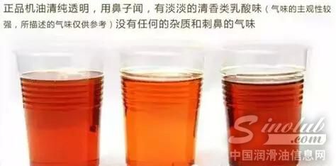 首先是颜色,在常温状态下,正品机油的颜色都要比假货机油要深不少。
