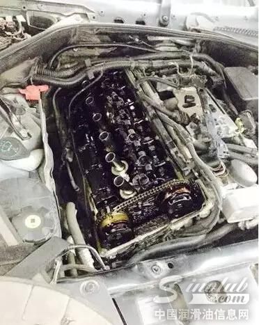 这是一位宝马车主,一直在某宝的某金牌卖家那里(哪家大家猜吧)购买所谓美版金美孚5w30,结果直6纵置后驱发动机成了这副样子。