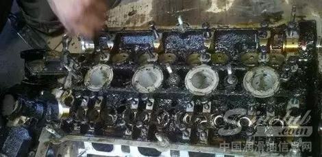 打开发动机全部都是黑乎乎的胶质与杂质,下图为保养良好的发动机开缸状态。