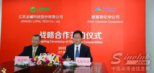 3月27日下午,龙蟠科技与全球添加剂技术领军企业雅富顿在天津正式签订关于添加剂采购和共建汽车润滑节能技术中心的战略合作协议,这也是龙蟠与台塑、SK、埃克森美孚相继达成基础油采购战略合作协议之后,再一次和世界领先的润滑油原材料供应商结成战略合作伙伴。