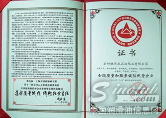 近日,由中国质检协会组织开展的“质量和服务诚信承诺”评选活动正式揭晓,经过严格审查、筛选,安耐驰河北石油化工有限公司在此次活动中被评为全国质量和服务诚信优秀企业,我公司生产的安耐驰精驰、安耐驰风、安耐驰神、耐驰品牌润滑油、抗磨剂、节能剂、防冻液等被评为全国质量检验稳定合格产品。