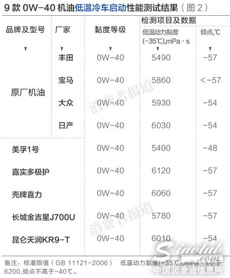 低温冷车启动性能日产、丰田原厂机油分别占优