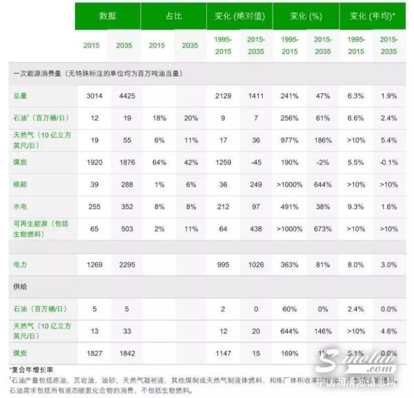 1.虽然能源需求增长缓慢,2035年中国在全球能源消费中的占比仍超过25%