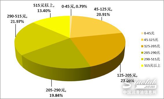 在价格方面,机油猫数据显示,近八成消费者支付的价格集中在126-205元和206-290元之间,每个区间段的买家比例大致相等。