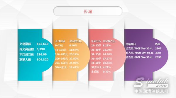 随着润滑油电商市场的不断发展,越来越多的用户选择通过电商平台购买心仪的润滑油产品。“6·18”电商节活动的火爆带动了6月份线上机油的销售,使本月的机油电商呈现高涨态势。据首席正品机油电商导购平台机油猫(m.sinolub.com)的统计,2017年6月份,阿里平台汽机油类目的访客数达458.6万人次,相比上月上涨10.8%;浏览量突破2773万次,和上月相比增长15%;成交量则超过52.4万件,涨幅高达30%! 令人眼前一亮的是,尽管“6·18”期间各大品牌均推出了具有一定力度的价格折扣,但是6月线上机油的平均成交价格仍维持在303元的水平,与上个月基本持平。