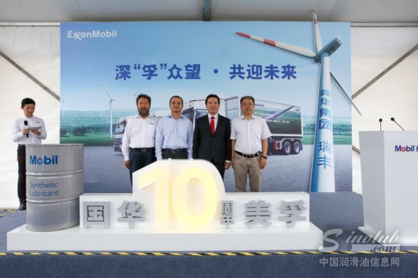 2017年7月19日,山东荣成——近日,埃克森美孚(中国)投资有限公司与国华能源投资有限公司合作十周年庆典顺利举行。借双方合作十周年之际,埃克森美孚使用专业的风电换油工程车,为荣成风场的风电机组更换业内首款有限质保期长达7年1的美孚SHC™齿轮油320WT。国华能源投资有限公司山东分公司副总经理龙云汉先生、埃克森美孚(中国)投资有限公司副总经理黄卫防先生和中国农机工业协会风能设备分会秘书长祁和生先生莅临活动现场,共同见证了这一里程碑式的时刻,并就未来的合作进行了深入探讨。
