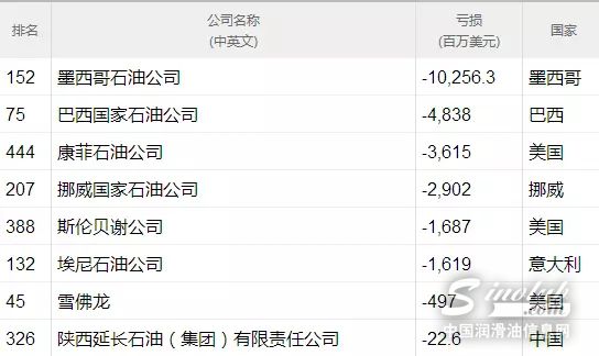 世界500强亏损石油公司名单