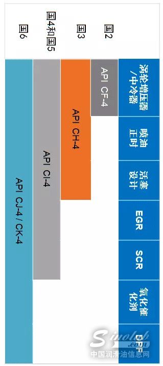 ▼ 排放法规对应的硬件变化及润滑油等级