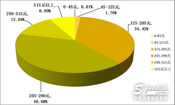 在价格方面,机油猫数据显示,近八成消费者支付的价格集中在126-205元和206-290元之间,每个区间段的买家比例大致相等。