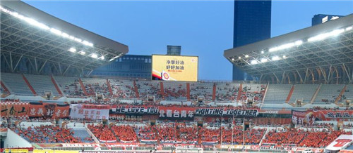 除了用爱心捐赠的方式助力足球发展,在当晚比赛现场,壳牌也为山东球迷们准备了另一份惊喜和震撼的礼物。比赛开始前,一幅巨大的TIFO横幅在看台上徐徐展开,“我心忠橙”的告白和无数球迷欢呼的画面呈现在聚光灯下,这也成为当天比赛现场的一大亮点。