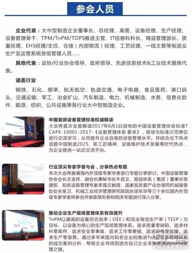 前言2017中国设备管理大会暨第十五届全国TnPM大会将于9月20~22日在美丽泉城——济南•山东大厦举行。顺益体系(集团)是本次大会的承办单位,将携手中国设备管理协会工业集成服务中心共同承办“...