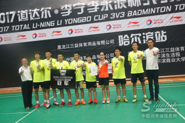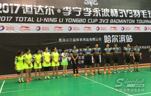由道达尔润滑油(中国)有限公司冠名,李宁(中国)体育用品有限公司主办,黑龙江省三益体育有限公司承办的2017道达尔?李宁李永波杯3V3羽毛球赛哈尔滨站于8月12日在哈尔滨商业大学北区体育馆热力开打。世界冠军王琳,道达尔润滑油(中国)车用油市场经理冯卫、道达尔润滑油(中国)车用油技术经理李小舟,李宁公司黑吉辽蒙、陕甘宁青新大区经理相英魁,黑龙江三益体育用品有限公司乒羽展示中心经理冷熙伟到场参与了赛事的开幕式。本站赛事参与人数共计770人,创造了近3年黑龙江省羽毛球赛参与人数最多的记录,现场也吸引了从吉林省、辽宁省特意赶来的球友。