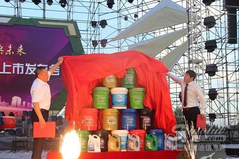 最后,贺孟涛与榆林市质量技术监督局副局长延艳东共同为金典润滑油新产品揭幕。