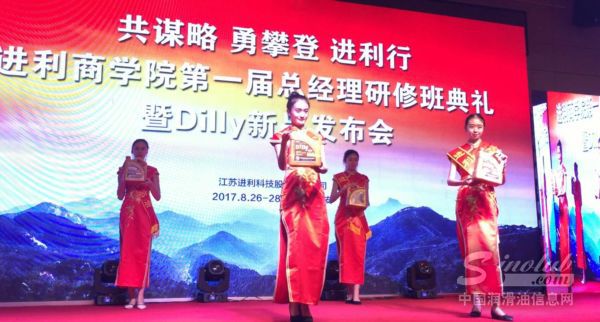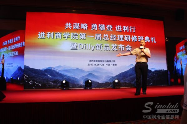 【8月27日,山东泰安】随着机动车保有量的节节攀升,在市场需求与政策导向双重作用下,中国汽车后市场进入了全新的发展阶段。为助力更多行业伙伴搭上转型升级的顺风车,全面认知已经到来的万亿级汽车后市场蓝海,进利商学院第一届总经理研修班典礼暨Dilly新品发布会在泰安隆重召开。本次研修班面向企业总经理、创始人和行业精英,共同探讨行业发展的趋势与机遇,并盛邀了多位嘉宾分享营销实战经验,解析渠道运作模式,为来自全国各地合作伙伴献上了一场精彩纷呈的培训会。同时, Dilly进利润滑油全新产品正式发布,开启了由被动润滑到主动润滑的360智能养护新时代。