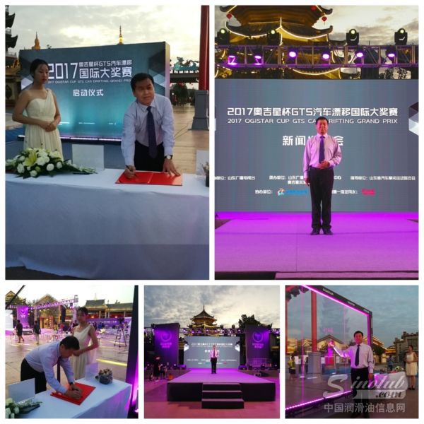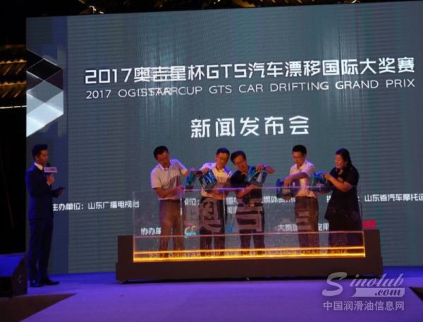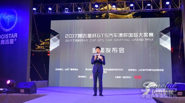 山东广播电视台副台长林修功、山东省体育局外事处处长石显军、天泰集团副总经理张雪莹等共同登台,为2017“奥吉星杯”GTS汽车漂移国际大奖赛的发布正式开启。