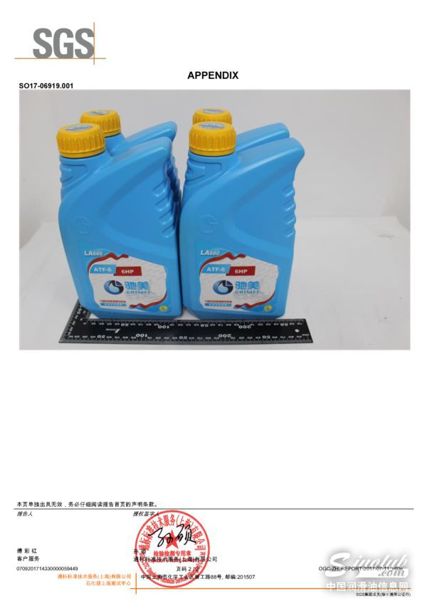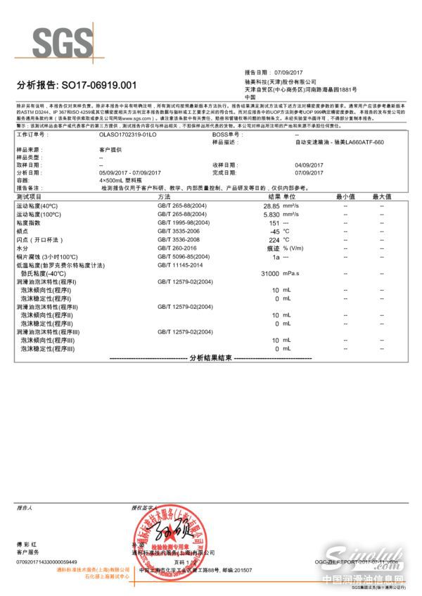 驰美LA660 ATF-660变速箱油检测报告