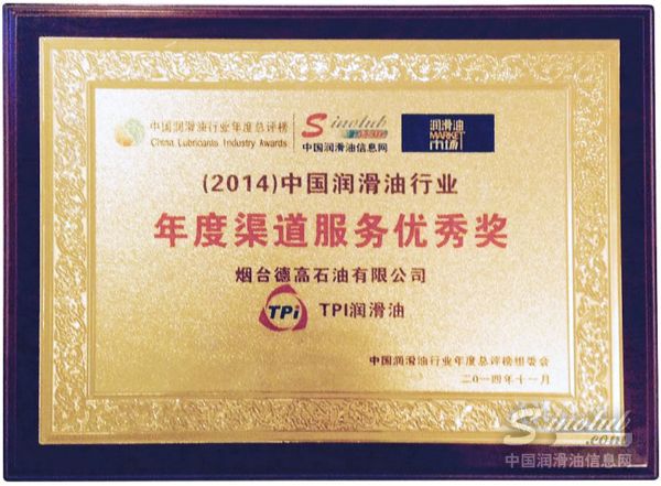 2014年,泰普艾凭借高效的渠道服务系统和直通终端的特色服务,荣获“中国润滑油行业年度渠道服务优秀奖”。