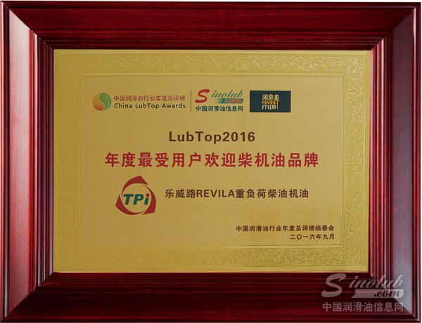2016年,乐威路重负荷柴油机油凭借优异的市场表现,获得“年度最受用户欢迎柴机油品牌”奖项。