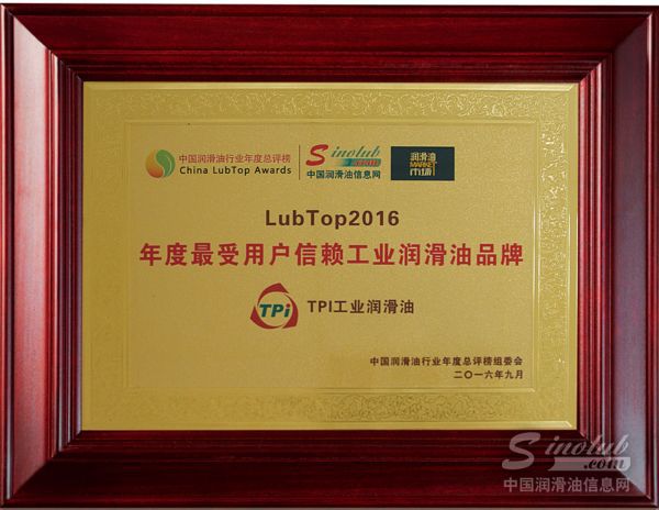 2016年,工业润滑油凭借卓越的产品品质以及创新技术配方的开发,荣获“年度最受用户信赖工业润滑油品牌”奖项。