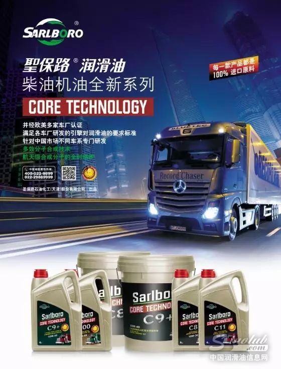 目前,商用车发动机市场,“国五”酣战正欢,“国六”箭在弦上。圣保路C11、C8、C6、C5等全合成柴油机油,同样采用多效分子合成技术,具有优良的低温启动性和高温润滑性,超强的高温清净性能和氧化稳定性,能够最大限度减少磨损,有效延长发动机使用寿命,降低油耗,有效改善排放达到欧IV、欧V标准,现已获得康明斯CUMMINS 20081、沃尔沃VOLVO VDS-4、奔驰Daimler等国际知名制造商认证许可。