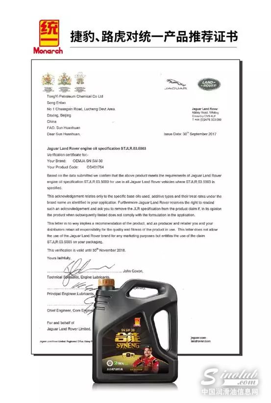 近日,凭借在产品技术方面的悉心耕耘,统一石化合能产品成功通过英国捷豹路虎汽车集团技术检验,获得捷豹路虎轿车油产品全球技术认证,不仅再次引领行业,更是中国第一家!