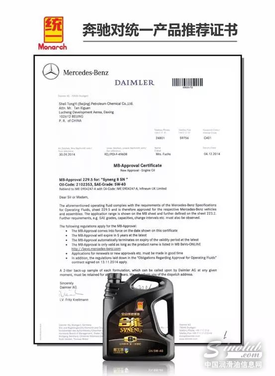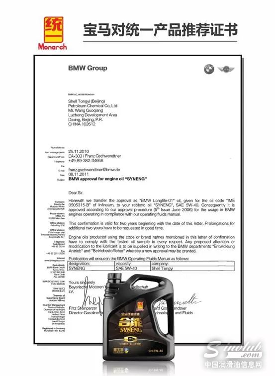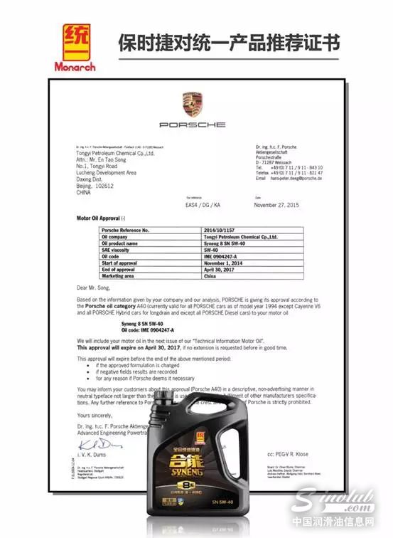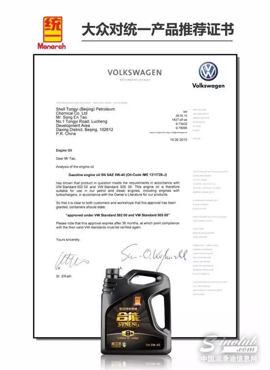 统一合能系列产品已获得7大轿车品牌用油认证