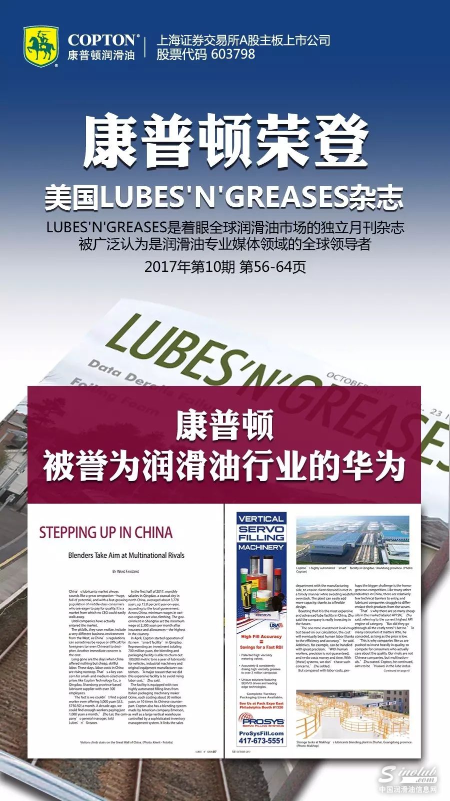 LUBES'N'GREASES是着眼全球润滑油市场的独立月刊杂志被广泛认为是润滑油专业媒体领域的全球领导者2017年第10期 第56-64页文中重点介绍在他们眼中的“康普顿"被誉为”润滑油行业的华为“被国...