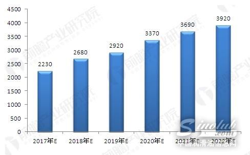首先,我国是世界第二大润滑油消费国,2016年中国润滑油表观消费量达到1300万吨,未来5年中仍将以每年5%左右的速度增长,预计到2022年,中国的润滑油消费量会超过美国。届时,2022年我国润滑油市场规模将达到3920亿元,需求规模翻一番。