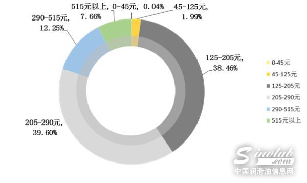 在价格方面,机油猫数据显示,近八成消费者支付的价格集中在125-205元和205-290元之间。