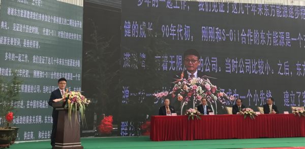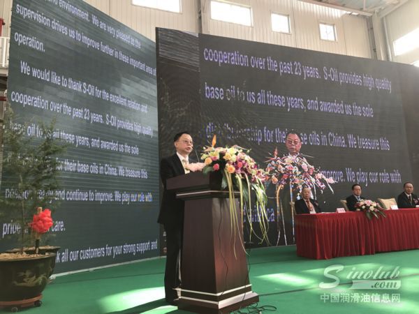 江苏东方能源有限公司董事长刘如成先生表示,公司和韩国S-Oil 23年来的密切合作,为公司提供了顶级的基础油,也使公司长期成为S-Oil基础油的总代理、总销售公司,公司对此非常珍惜。他指出,公司建造新厂的决策基于几个重要因素:中国经济在国内和一带一路国外发展的配合下,继续保持了6.5 到7% 的年增长率;本地政府的鼎力支持和优越的地理位置;基础油的可靠供应;一个磨练了10年的成熟团队;以及一群高质量的、对我们信任的客户群体。新厂落成后,东方能源的润滑油产能将达到每天500吨,可为客户提供更好的服务。