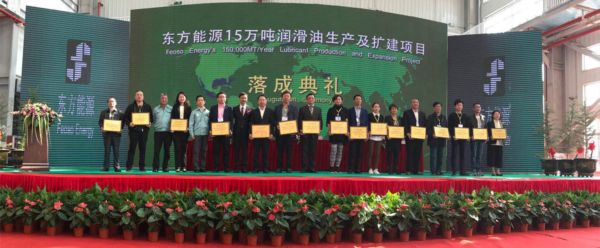 2017年10月27日,江苏东方能源有限公司15万吨润滑油生产及扩建项目落成庆典仪式在江苏靖江市隆重举行,靖江市市委赵叶书记、江阴靖江工业园区党委赵巧新书记、江苏东方能源有限公司企业领导、韩国S-Oil公司企业代表团和海内外众多业内朋友共同出席本次仪式,一同见证本次东方能源公司创新发展的重要里程碑。