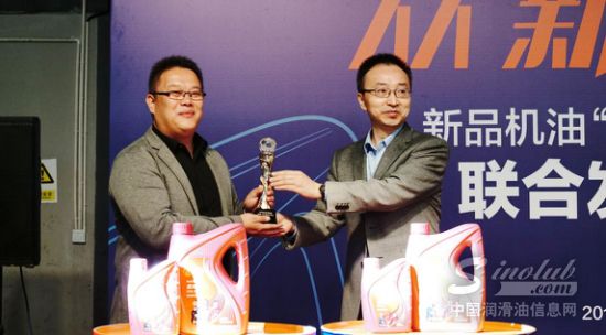 图注:途虎养车线下运营副总裁周可人(左)海湾石油全国销售总监邓文斌