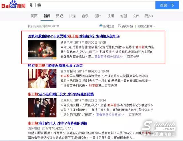 张丰毅代言汉地润滑油的新闻在多家媒体刊载,热度持续不断,雄踞新闻榜第一名,你get到了吗?