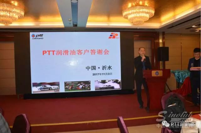 2017年11月3日,舟车劳顿,考察团一行来到沂水,参加了2017泰国国家石油PTT润滑油潍坊(沂水)客户答谢推广会,PTT副总裁洪先生现场致辞,为经销商加油鼓劲,也为经销商在市场推广过程中增强了信心。会议内容丰富,形式新颖,奖品不断。考察团的到访更让到场的经销商朋友们信心倍增,相信PTT润滑油中国市场一定会节节攀升。