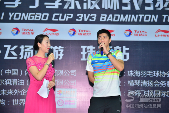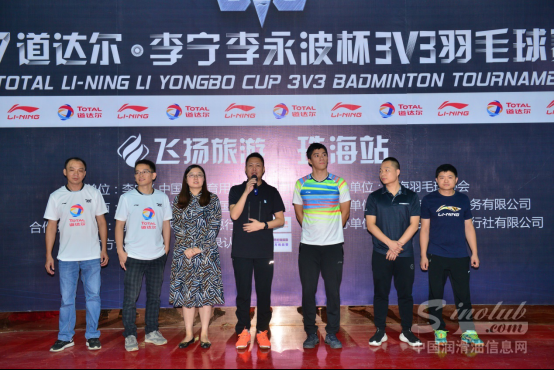 珠海站有幸邀请到羽毛球奥运冠军特邀嘉宾傅海峰先生,道达尔润滑油(中国)有限公司市场沟通与电子媒体经理麻微女士,道达尔润滑油(中国)有限公司广东省销售经理陈峰先生,李宁(中国)体育用品有限公司粤区经理吴茂林先生,李宁(中国)体育用品有限公司大区经理陈建修先生,珠海市凯基贸易有限公司总经理谢文基先生,珠海飞扬国际旅行社有限公司董事长,珠海羽毛球协会会长梁海清先生莅临比赛现场,为本次比赛开球,并为参赛选手加油助威。